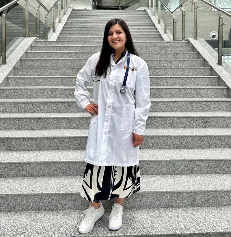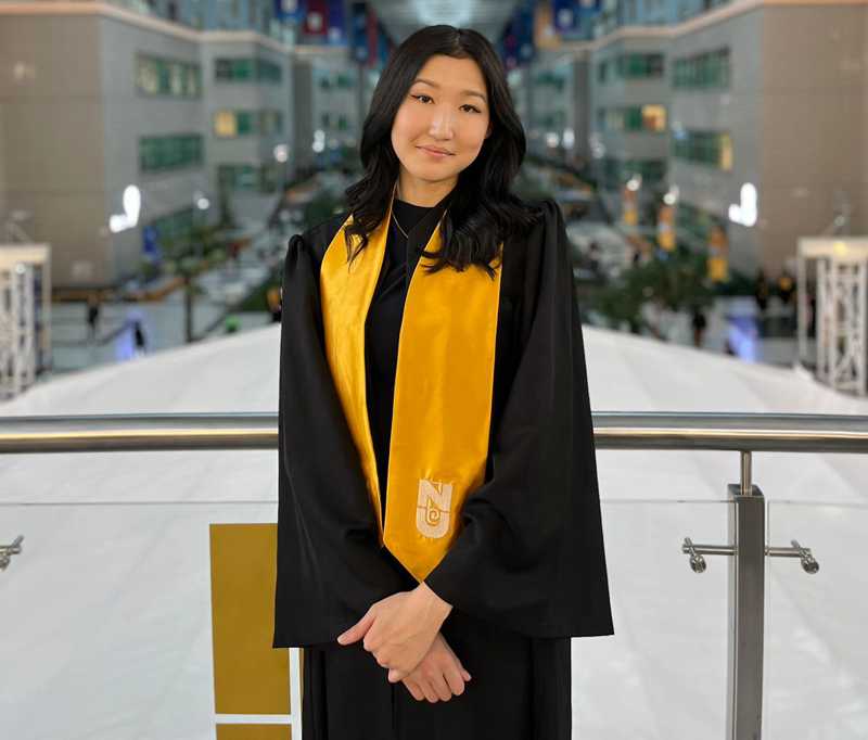 Шахноза Калимжанова из села Карабулак Туркестанской области с медицинской карьерой определилась на бакалавриате NU, где изучала биологические науки. Сейчас окончила программу «Доктор медицины» (MD). «Программа MD аффилирована с Медицинской школой Питтсбургского университета, поэтому основана на американской модели подготовки. На последнем семестре Школа отправила 9 лучших студентов программы в больницу в Дубае, среди них была и я. Я работала в отделениях внутренней медицины и кардиологии, и наши знания были высоко оценены врачами. Исследования были важной частью учёбы, в группе профессора Димитрия Поддиге мы изучали охват иммунизацией детей с хроническими заболеваниями и сейчас готовим статью для публикации. Я планирую продолжить свою медицинскую карьеру и поступить в ординатуру по внутренним болезням», – рассказала Шахноза.