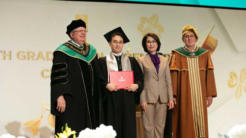 «Миссия университета – подготовка высококвалифицированных профессионалов, которые станут лидерами изменений во всех сферах казахстанского общества и за его пределами», – отметил на церемонии председатель Комитета по социально-культурному развитию Мажилиса Парламента РК Асхат Аймагамбетов. «NU – один из ведущих университетов не только в Казахстане, но и в мире, мы можем сказать это с большой гордостью. Завершить обучение в таком университете – это не только предмет гордости для наших студентов, но и большая ответственность. Поэтому я верю, что они будут использовать знания, полученные здесь, для развития страны и нашей экономики. Желая всем выпускникам успехов, хочу поблагодарить также преподавателей», – сказал Аймагамбетов после вручения дипломов с отличием 10 выпускникам бакалавриата NU.