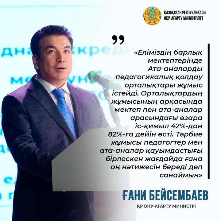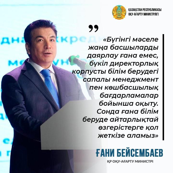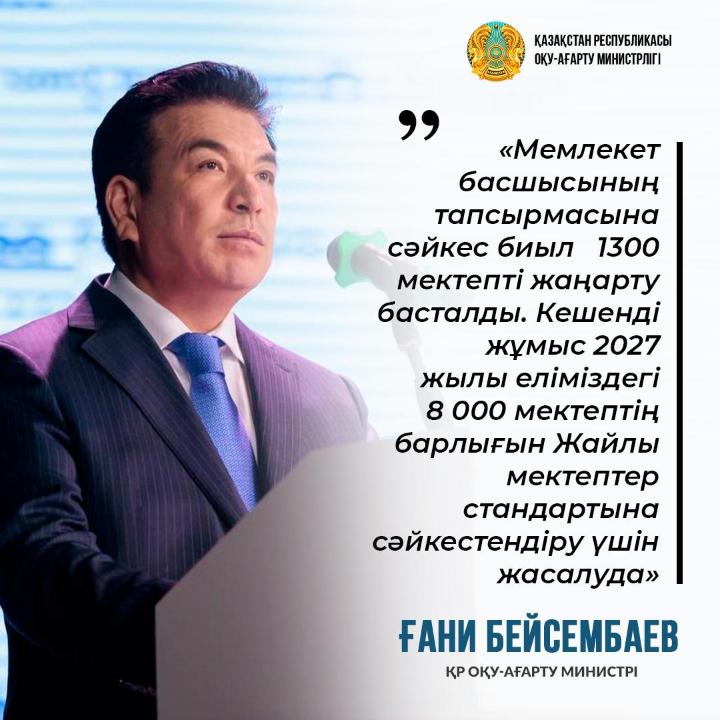 Оқу-ағарту министрі Ғани Бейсембаевтың кеңейтілген алқа отырысындағы баяндамасынан – Из выступления министра просвещения Гани Бейсембаева на расширенном заседании коллегии