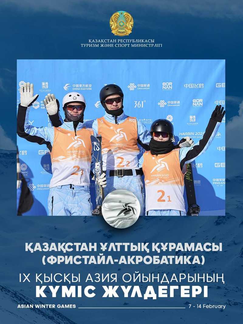 На зимних Азиатских играх в Харбине сборная Казахстана завоевала серебряную медаль в смешанной командной эстафете по фристайл-акробатике! Наши спортсмены продемонстрировали мощные прыжки, отличную технику и слаженную командную работу, уступив лишь сборной Китая, которая стала чемпионом соревнований.