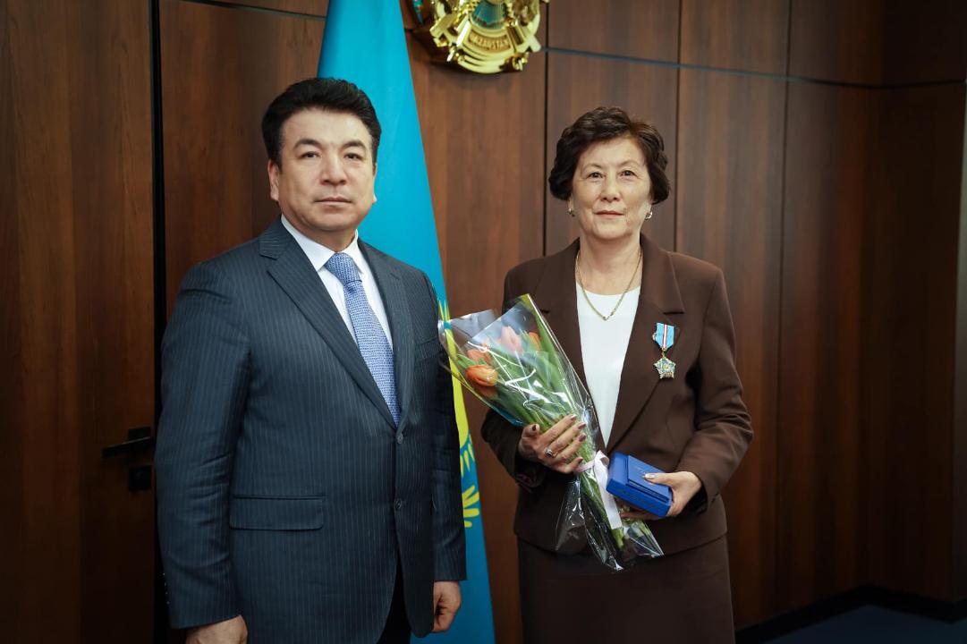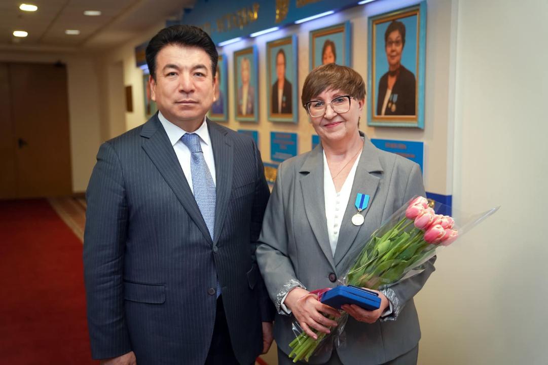 Орденом «Ерен еңбегі үшін» награждены: Роза Алимсаева из города Астаны и Ирина Худякова из Костанайской области.