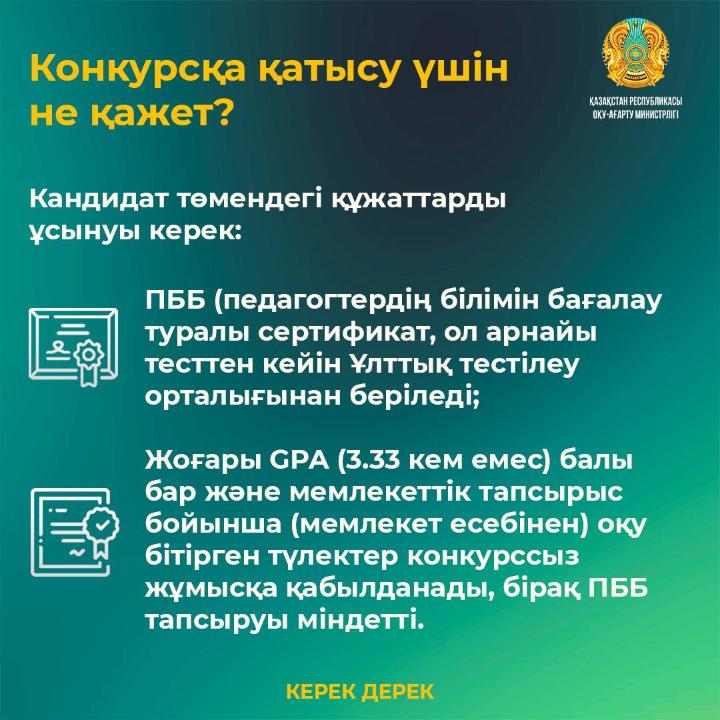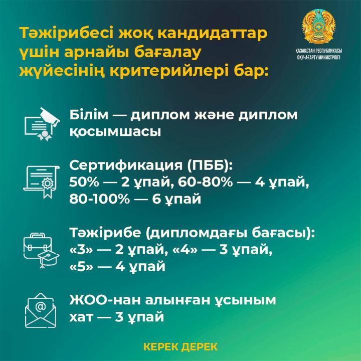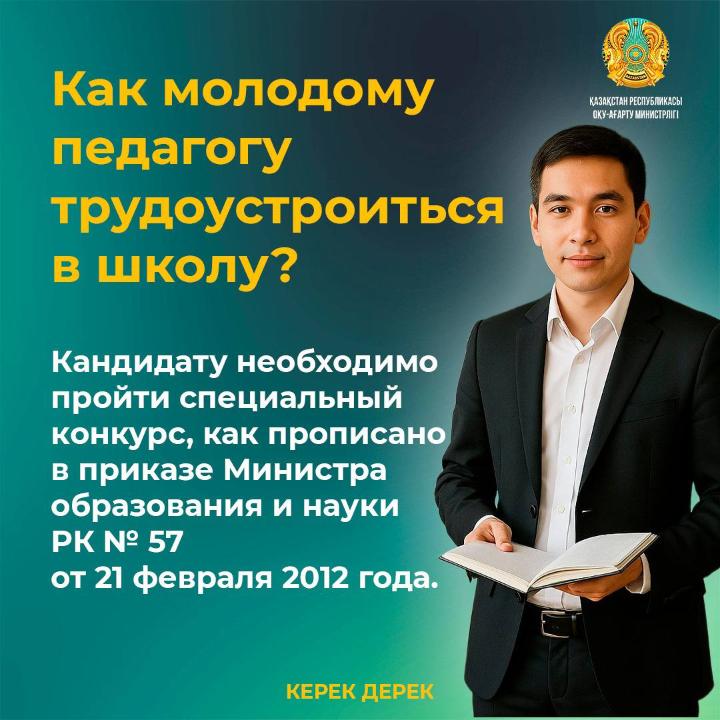 В рубрике «Керек дерек» мы расскажем о ключевых шагах и требованиях для молодого педагога, желающего устроиться на работу в школу, передает пресс-служба Министерства просвещения РК.