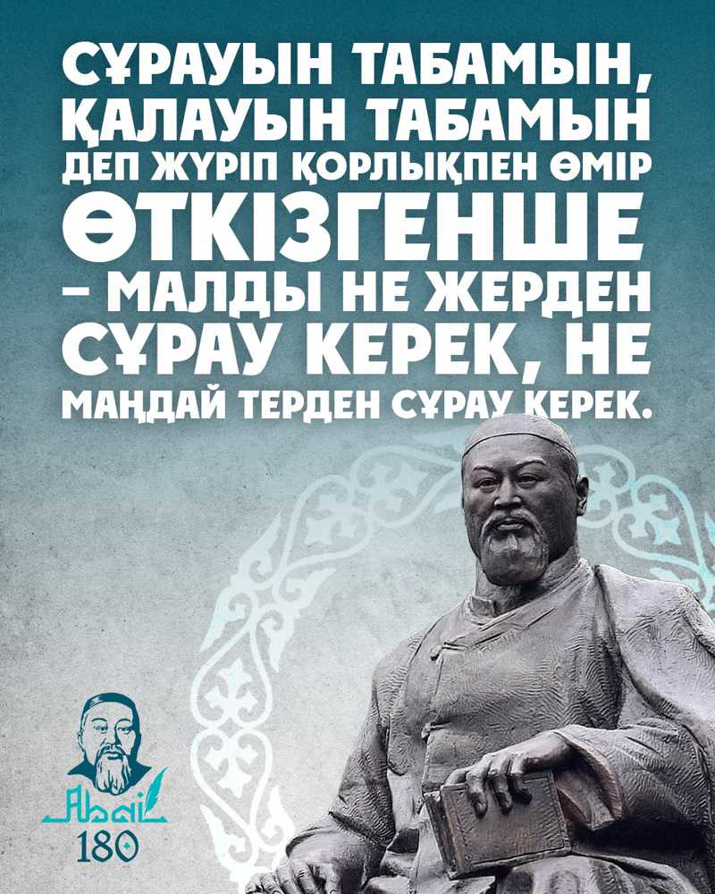 Поэтому по инициативе Главы государства с прошлого года мы внедряем дисциплину Абая «Толық адам» во все университеты страны. Потому что наследие Абая-это не просто мир абаеведов и литературоведов, это духовный ориентир, золотой стержень национального воспитания и культурной ценности, который должен быть заложен в сознании каждого казахского ребенка. Совместная работа на этом пути-общая задача всех нас».