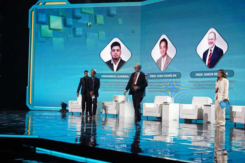 В работе конференции приняли участие министр просвещения Гани Бейсембаев, министр науки и высшего образования Саясат Нурбек, аким города Алматы Дархан Сатыбалды, а также авторитетные зарубежные гости: профессор Simon Redfern – всемирно признанный учёный, ректор Университета Сингапура и ведущий специалист в области минералогии, экологии и изменения климата, Химаншу Ажмера (Himanshu Ajmera) – представитель Wayground Quizizz AI (США), разработчик крупнейшей ИИ-платформы для педагогов, которой пользуются более 50 миллионов учителей по всему миру, Чен Чунг Ан (Chen Chung-An) – профессор Наньянского технологического университета (NTU, Сингапур), специалист политики внедрения цифрового образования и технологий обучения, инклюзивного образования.