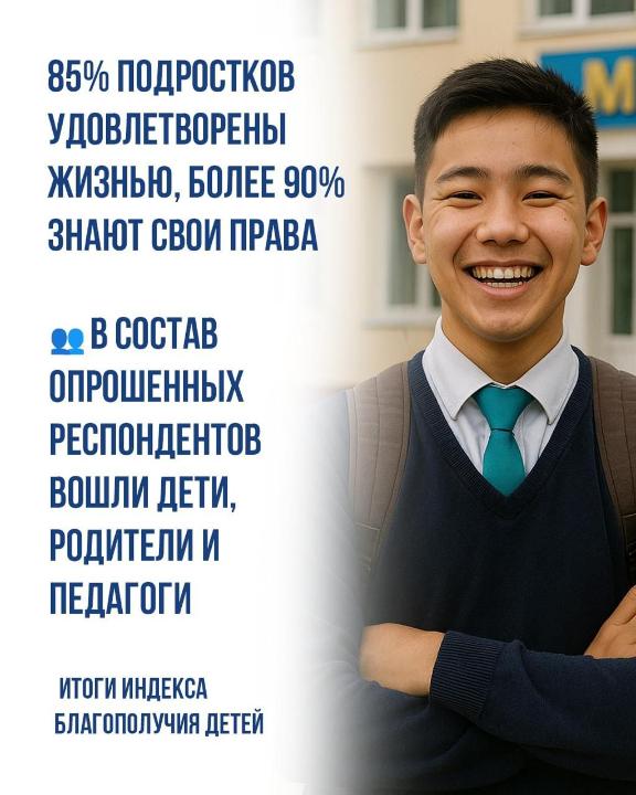 В Казахстане изучен уровень благополучия детей: 85% подростков удовлетворены жизнью, а уровень правовой защищенности превысил 90%