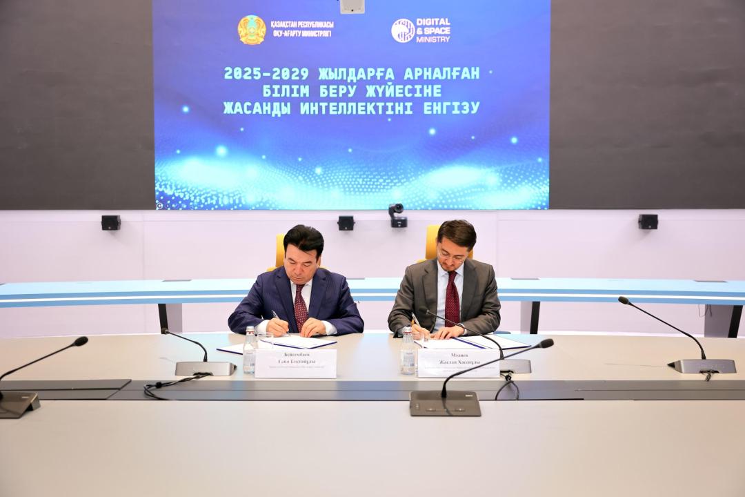 Министр просвещения Гани Бейсембаев и Министр цифрового развития, инноваций и аэрокосмической промышленности Жаслан Мадиев подписали Совместный приказ об утверждении Концептуальных основ внедрения искусственного интеллекта в систему среднего, технического и профессионального, послесреднего образования на 2025–2029 годы, передает пресс-служба Министерства просвещения РК.