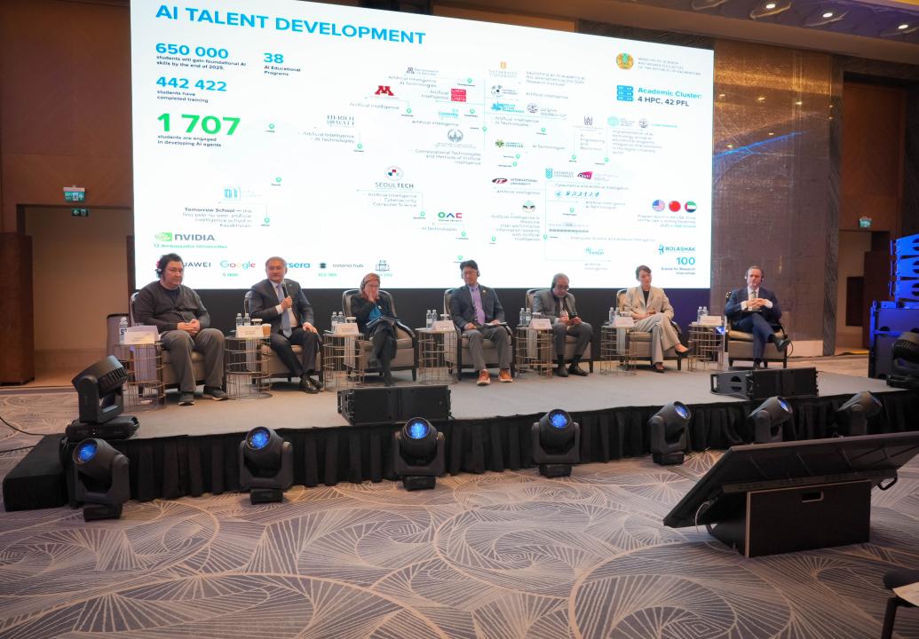 Еще одним важным событием стала панельная сессия Министерства науки и высшего образования «AI-Sana: как драйвер ИИ-трансформации высшего образования». В дискуссии приняли участие ведущие мировые эксперты: Пол Ким (Всемирный банк), Пегор Папазян (TUMO), Олаф Грот (UC Berkeley, Cambrian Futures) и Гэвин Шаддик (Cardiff University). Участники обсудили роль программы AI-Sana в подготовке нового поколения специалистов, развитии цифрового предпринимательства и интеграции международного опыта в систему высшего образования Казахстана.
