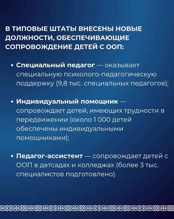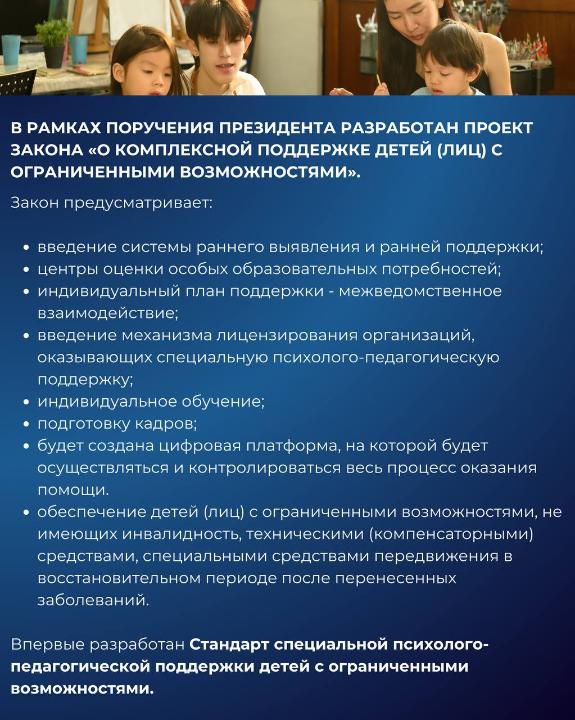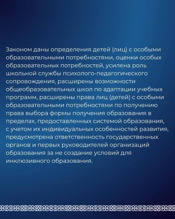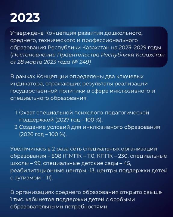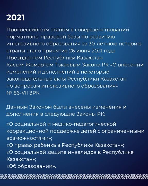 В нашей стране в этой сфере по инициативе Президента Касым-Жомарта Токаева были проведены масштабные работы по развитию нормативно-правовой базы и обеспечению равного и качественного образования для детей, передает пресс-служба Министерства просвещения РК.