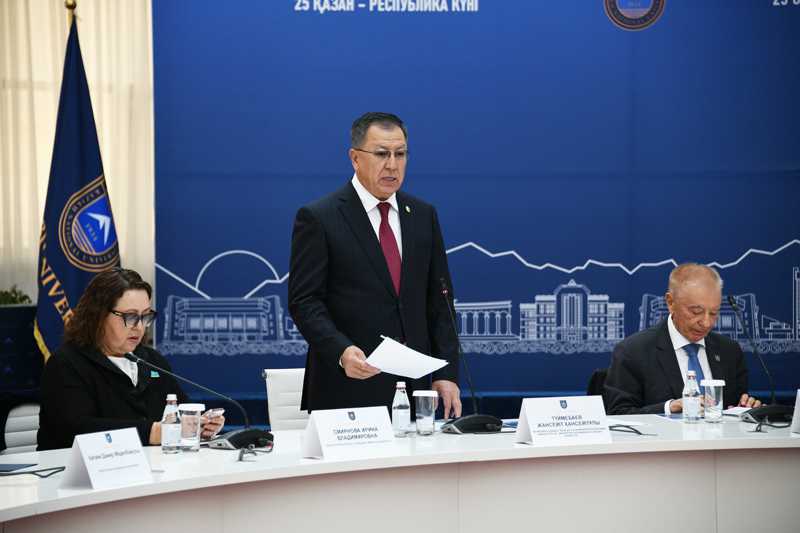 «Қазіргі таңда Қазақстан цифрлық технологиялар мен жасанды интеллект дәуірінде жаңа белеске қадам басты. Президент Қасым-Жомарт Кемелұлы Тоқаевтың басшылығымен еліміз «Заң және тәртіп» қағидаттарына негізделген жаңғыру стратегиясын табысты іске асыруда. Бұл бағыт әділеттілік, ашықтық және жауапкершілік құндылықтарын тұрақты дамудың басты ұстанымына айналдырды», – деді ректор.