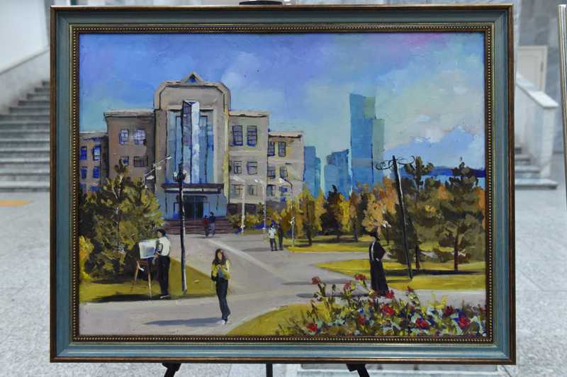 Картины, выполненные маслом, мастерски передают красоту и атмосферу КазНУ в разные времена года.