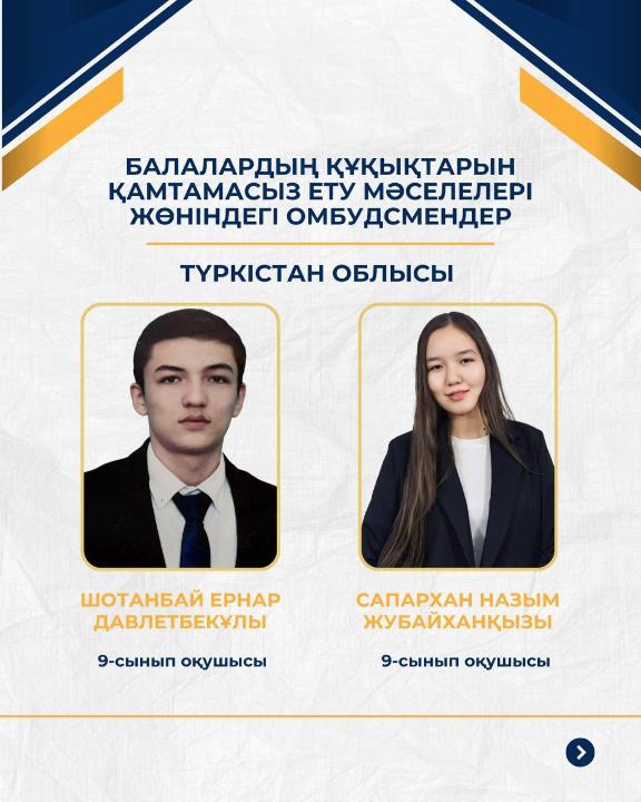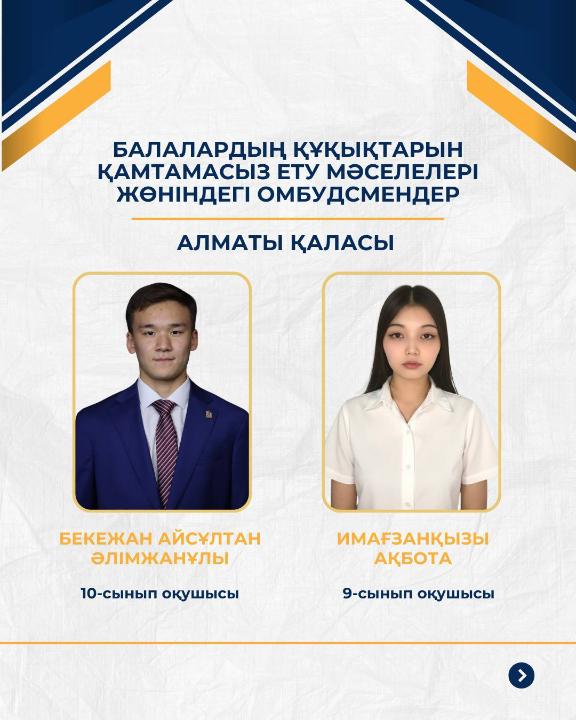 «Мы стремимся к тому, чтобы каждый ребёнок имел возможность влиять на решения, которые касаются его жизни. Детские омбудсмены являются частью системы, где голос ребёнка слышен и действительно учитывается. Мы видим в них наших партнёров — они помогают нам понимать проблемы глазами детей и находить более точные решения», — подчеркнула председатель Комитета по охране прав детей Министерства просвещения РК Насымжан Оспанова.