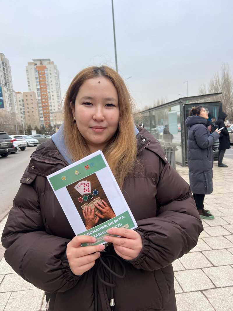 КГУ «Молодёжный ресурсный центр «Астана жастары» акимата города Астана провел информационную акцию в рамках проекта «Jarqyn Bolashaq», направленного на профилактику и противодействие лудомании среди молодежи.