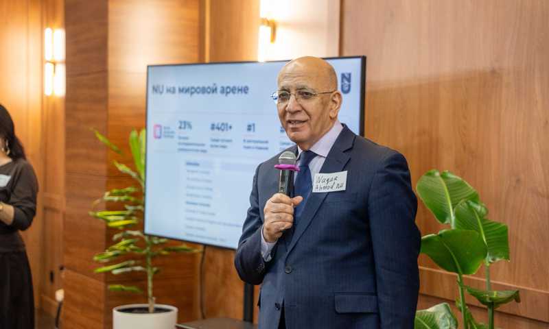 Руководство NU во главе с президентом Вакаром Ахмадом в канун Нового года провело встречу с редакторами казахстанских СМИ. В ходе встречи журналисты узнали о достижениях и прорывных инициативах этого одного из лучших вузов Казахстана. Более того, 2025 год стал для NU одним из самых значимых за всю 15-летнюю историю университета. От институциональной аккредитации мирового уровня и впечатляющего роста научной продуктивности до запуска новых образовательных программ и открытия уникальных исследовательских центров – NU закрепил позиции главного академического и инновационного хаба Казахстана и Центральной Азии. Вакар Ахмад отметил, что уклон на три основных фактора: обучение и подготовка студентов на мировом уровне, исследовательская деятельность и направление достижений университета на самые востребованные социально-экономические направления страны и всего центральноазиатского региона: «Нашу стратегию можно обобщить двумя главными фразами: «мировой уровень, осуществлённый в Казахстане!».