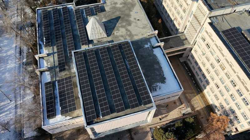 Әл-Фараби атындағы Қазақ ұлттық университетіндегі оқу корпустарының және жатақханалардың шатырлары инвестор есебінен жаңартылып, күн панельдері орнатылды.