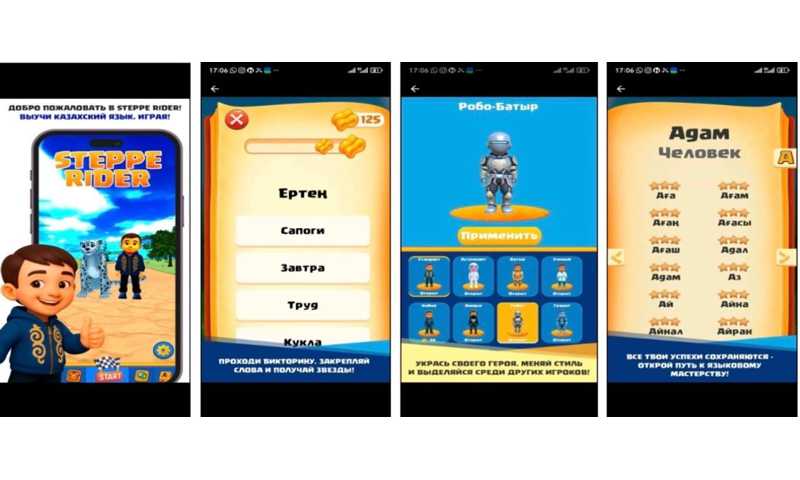 Steppe Rider – это обучающая игра, сочетающая раннер и викторину, разработанная для изучения казахского языка в игровой форме. Игрок отправляется в путешествие вместе со снежным барсом, выполняет задания, собирает буквы и слова, открывает новые темы и уровни, передает официальный сайт акимата Целиноградского района.
