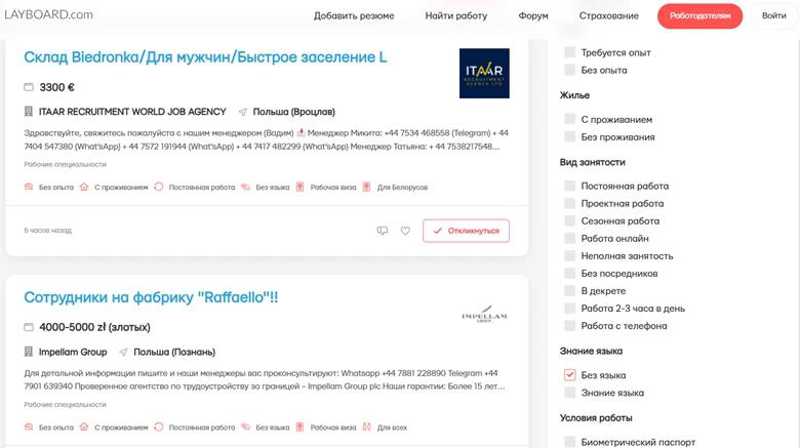 Один из ключевых вопросов — где искать работу в Польше без языка, чтобы не зависеть от случайных посредников и переплат. Самый практичный вариант — онлайн-платформы, где соискатель напрямую видит условия и может связаться с работодателем.
