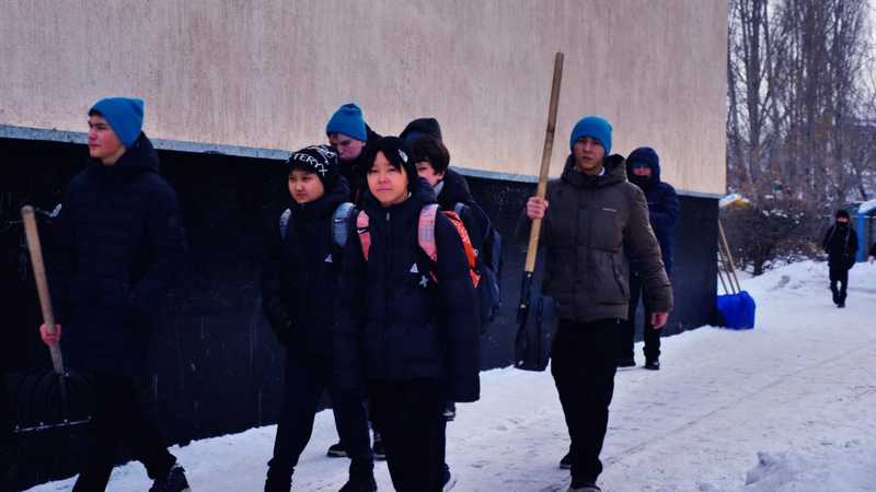«Наши школьники любят участвовать в таких общественно значимых мероприятиях. Сегодня учащиеся 9, 10 и 11 классов очистили от снега территорию детского сада «Алтын дән», расположенного рядом с нашим зданием, а также двор школы.