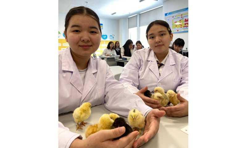 В Астане школьники самостоятельно вывели цыплят из инкубатора
