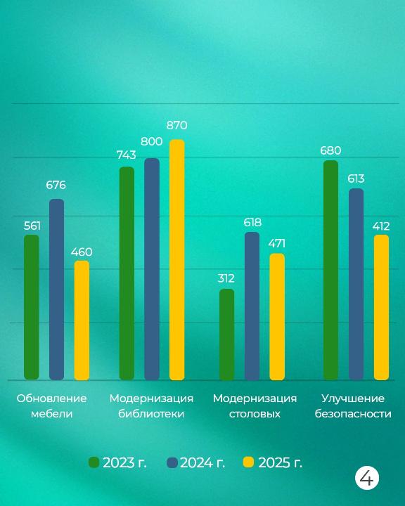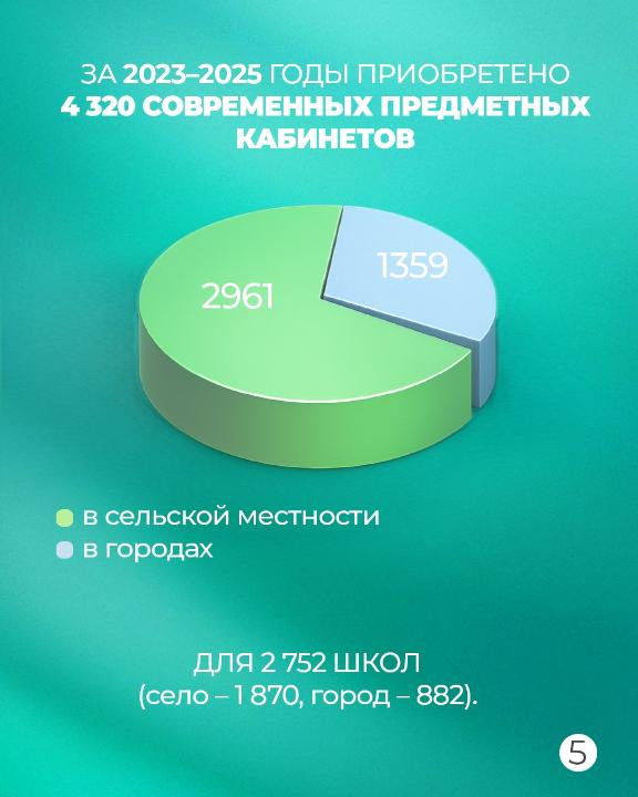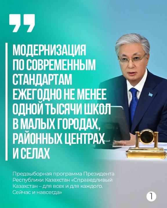 По поручению Главы государства в 2023–2025 годах проведена модернизация школ в малых городах, районных центрах и селах