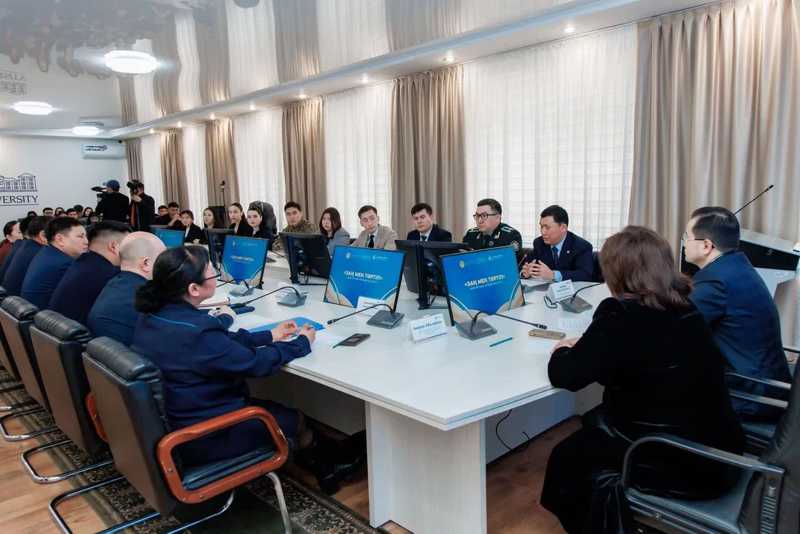 Жиын соңында университет ректоры Ермек Бөрібаев арнайы келген қонақтарға «Заң мен тәртіп» идеологиясының мәнін жастарға терең түсіндіргені үшін алғыс білдіріп, барша қатысушыларды 15 наурызда өтетін референдумға қатысуға шақырды.