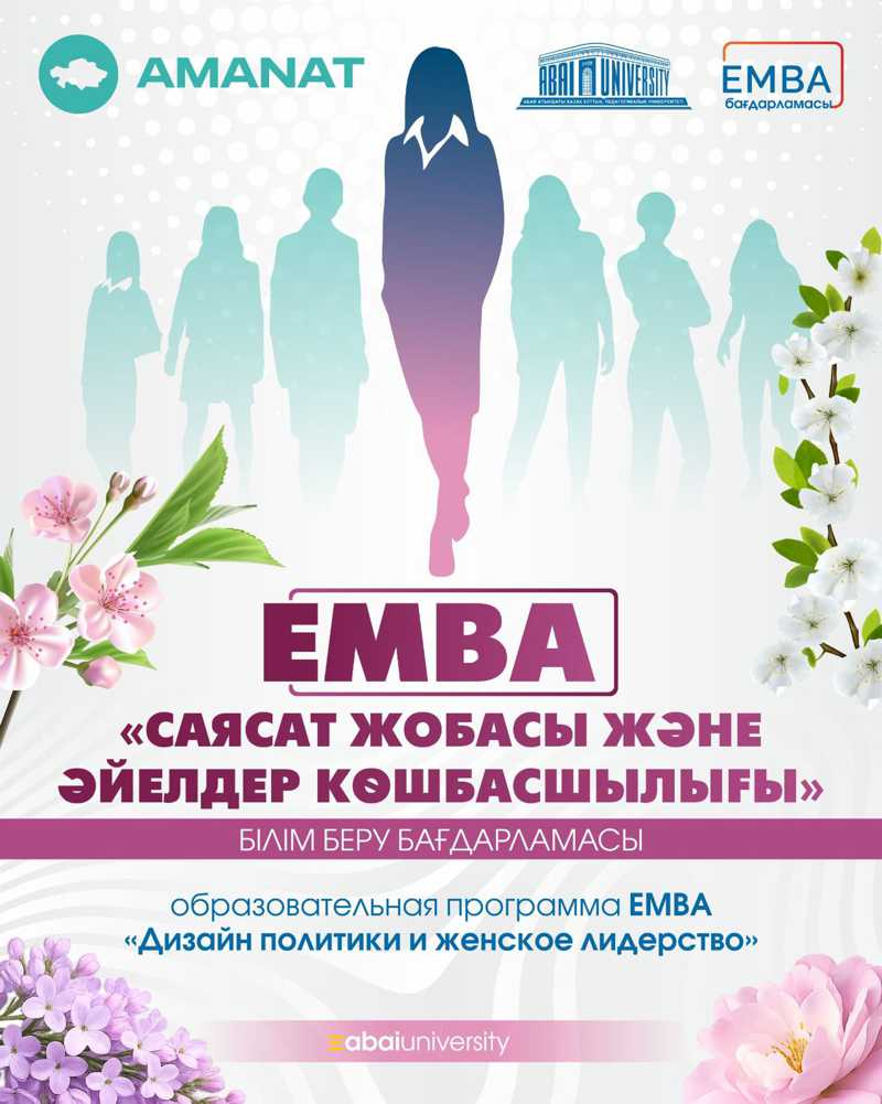 Абай университеті еліміздегі әйелдер қауымының көшбасшылық әлеуетін арттыруға бағытталған бірегей бастаманы қолға алды. Университет қабырғасында 7M04120 «Саясат жобасы және әйелдер көшбасшылығы (EMBA)» білім беру бағдарламасы іске қосылмақ. Аталған бастама «AMANAT» партиясының қолдауымен жүзеге асырылып отыр.