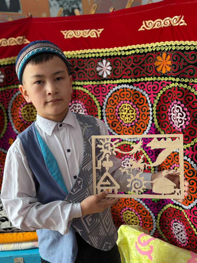 Павлодар облысының оқушысы фанерге ұлттық бейнелерді нақыштап, ағашқа ою жасады.