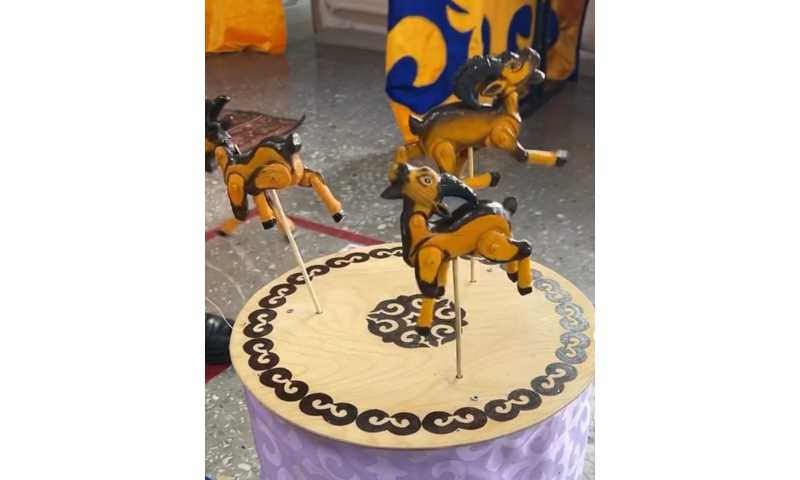 Орындау барысында музыканттың саусақтарына жіңішке жіптер байланып, сол арқылы ағаштан жасалған жануар мүсіндерін басқарады. Әуен ырғағына сай олар «жанданып», қозғалып, секіріп, әрбір дыбысқа ілескендей билейді. Көптеген оқушылар үшін бұл көрініс нағыз жаңалық болды, өйткені музыканы тек естіп қана қоймай, көзбен көруге де мүмкіндік туды.