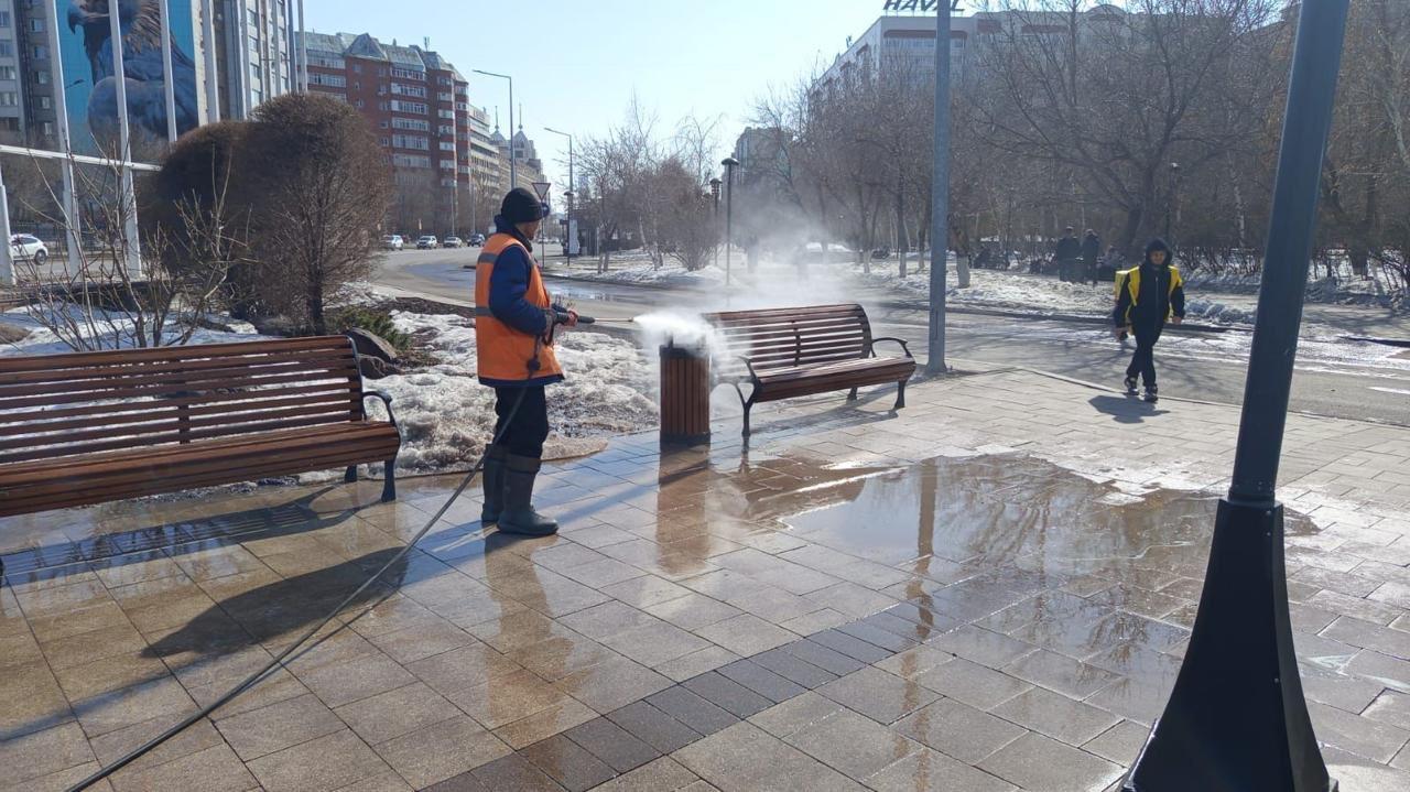 Қазіргі таңда қаланың барлық алты ауданында санитарлық тазалау жұмысы жүргізілуде. Тротуарлар мен жол жабындары арнайы техниканың көмегімен тазаланып, көгалды тұстар және басқа жерлер ретке келтіріліп жатыр.