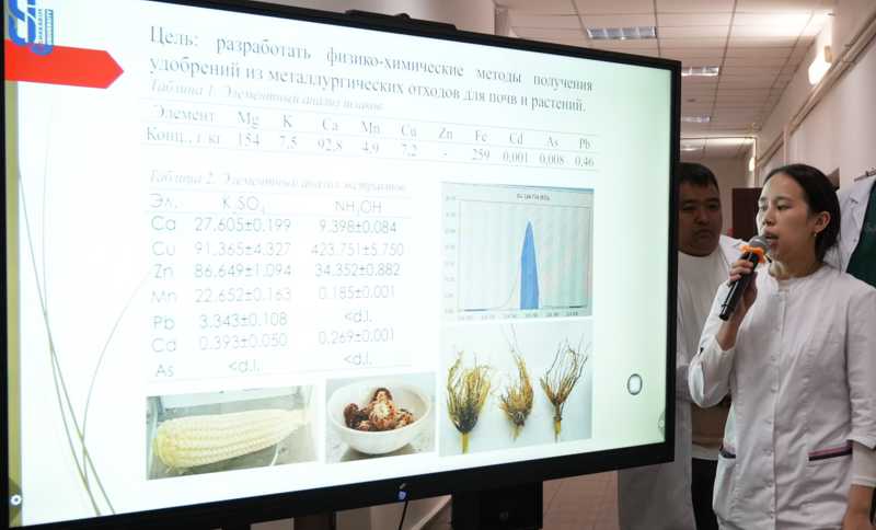 Сонымен қатар жобаға университеттің профессорлық-оқытушылар құрамы белсене қатысу арқылы (Б.Баяхметова, Б.Гайсина, Ж.Кабышева, А.Абдрахманова, Д.Әсержанов, А.Қажығабылова) ғылыми бағыттардың ілгері дамуына сүбелі үлестерін қосып келеді. Жобаның маңызды бөлігі саналатын металлургиялық қалдықтардан минералды тыңайтқыштар алу мақсатында қорғасын зауыты мен Жезкент кен-байыту комбинаты шлактарының фазалық және элементтік құрамы жан-жақты зерттелгенін білдік. Жүргізілген зерттеу нәтижесінде құрамында әлеуеті зор уытты элементтері аз болғандықтан, әрі қарайғы жұмыстар үшін бұрынғы қорғасын зауытының мыс шлагы таңдалған екен. Университет ғалымдары осы шикізат негізінде аммиак пен калий сульфатын қолдана отырып, химиялық шаймалау әдісімен минералды тыңайтқыш алу тәсілін әзірлепті.